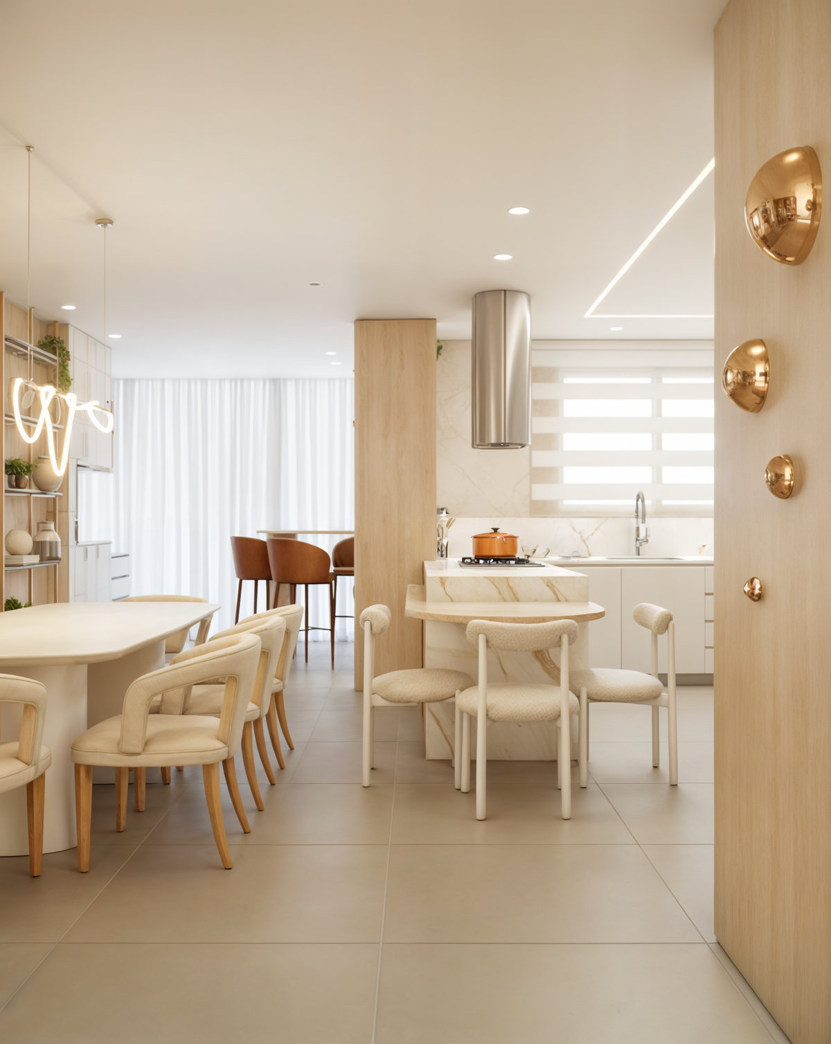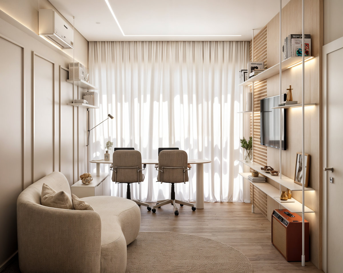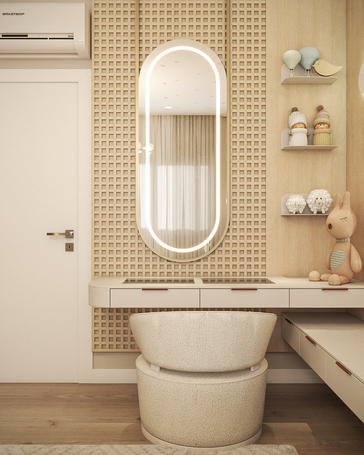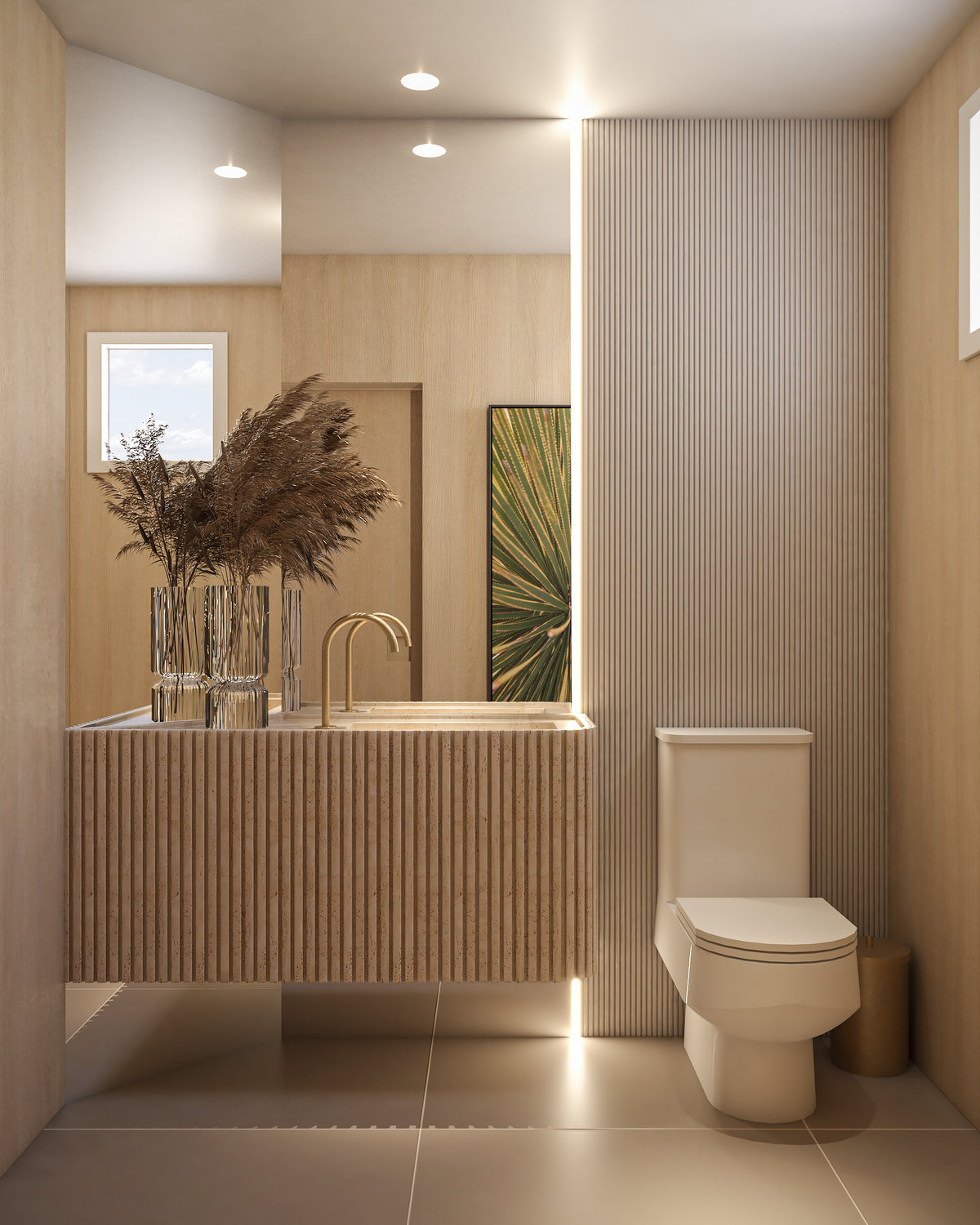 Trabalhamos com tons claros e linhas orgânicas garantindo um projeto atemporal.