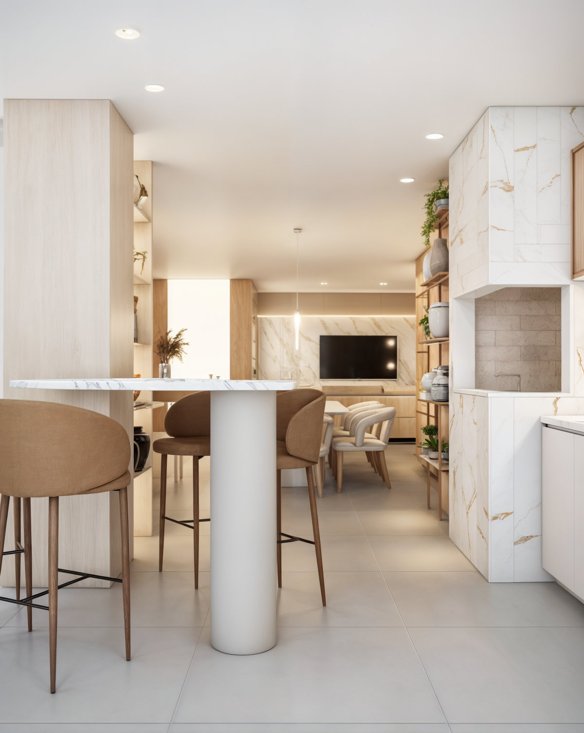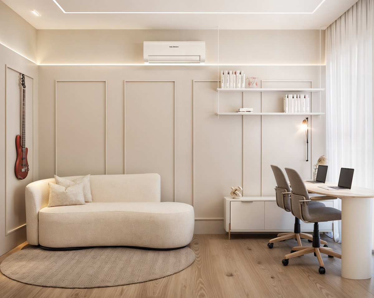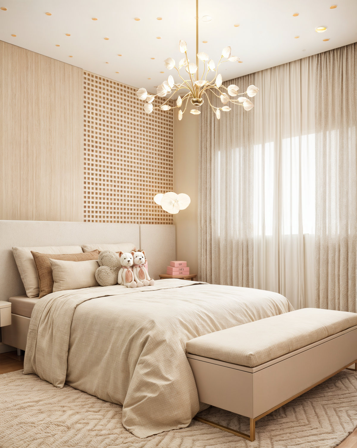 Trabalhamos com tons claros e linhas orgânicas garantindo um projeto atemporal.