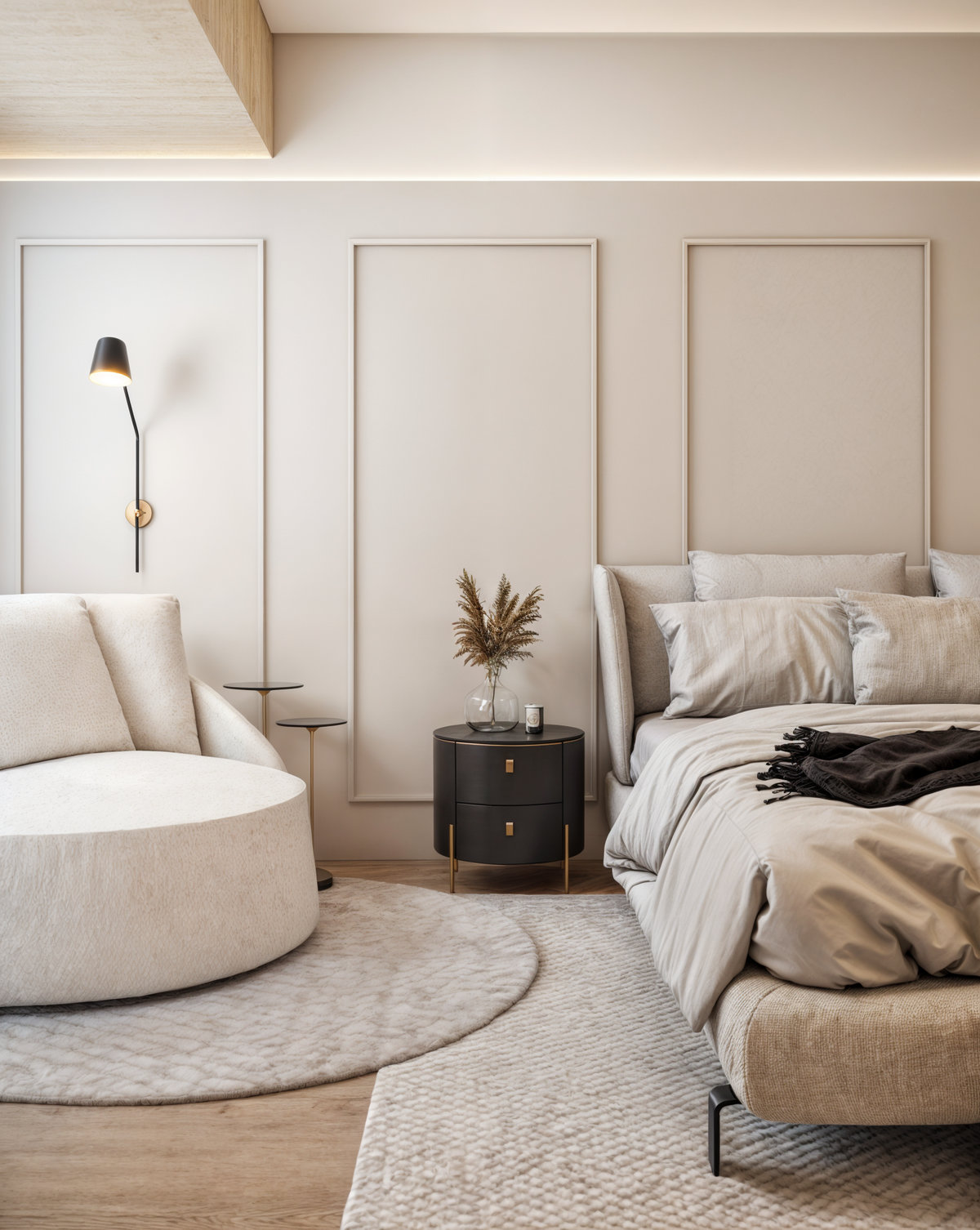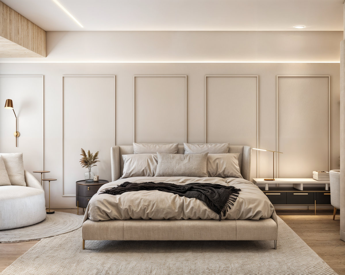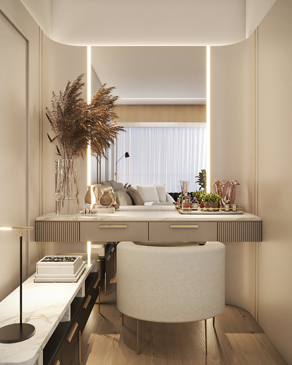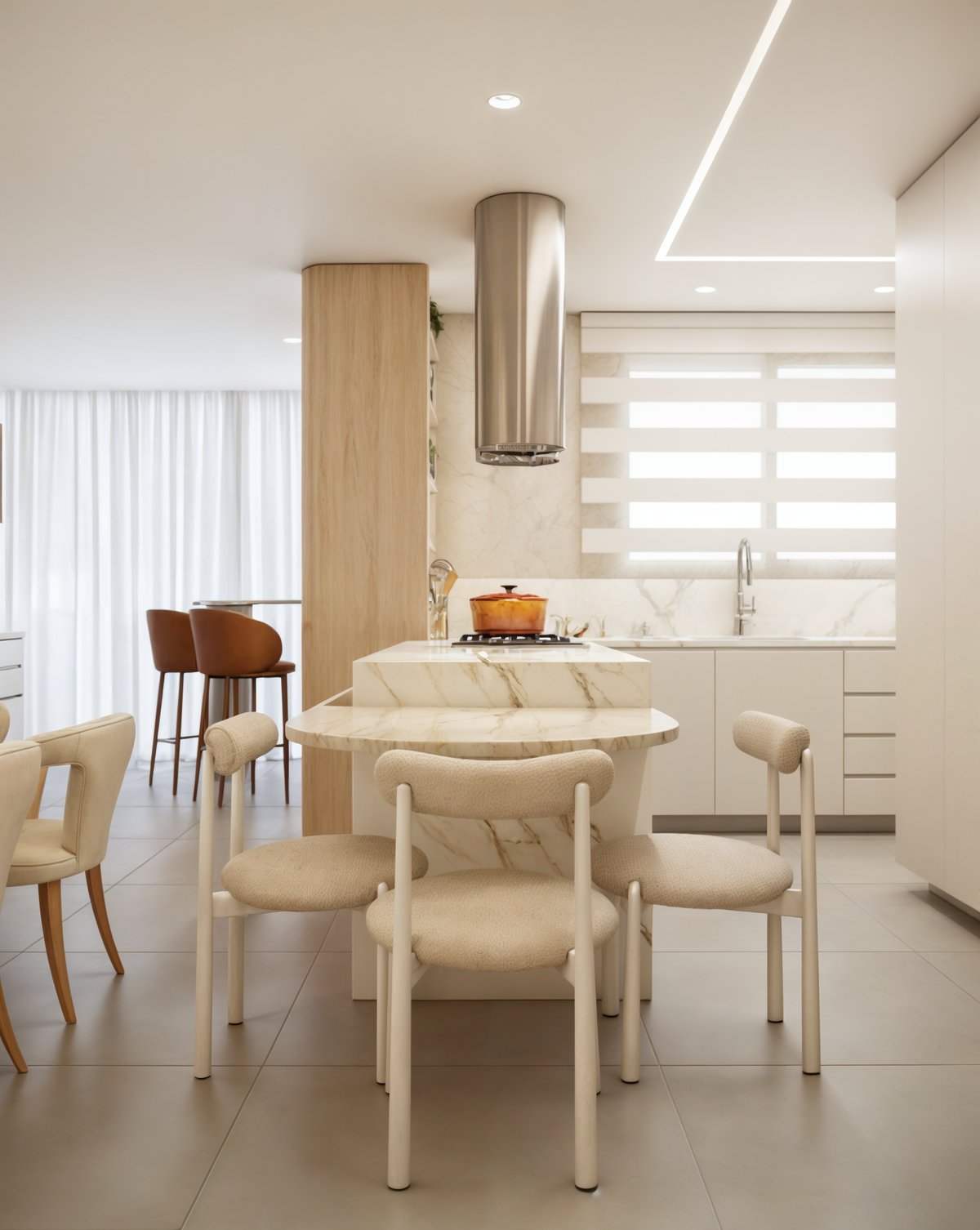 Trabalhamos com tons claros e linhas orgânicas garantindo um projeto atemporal.