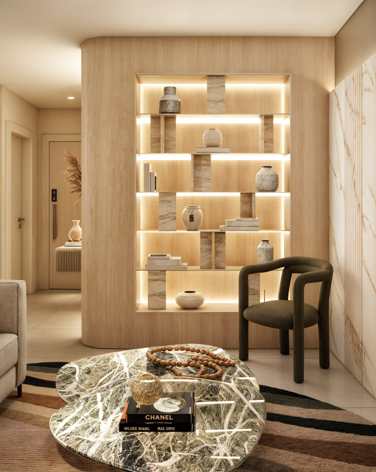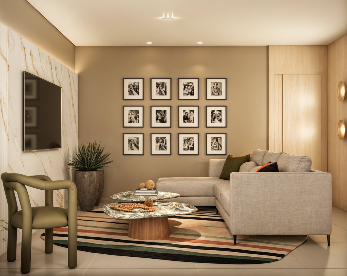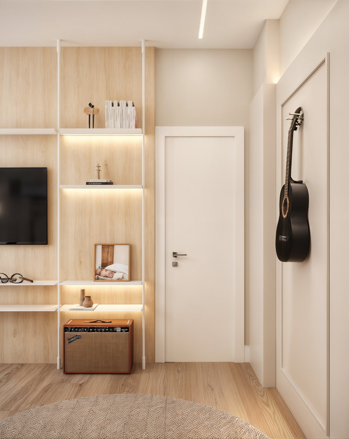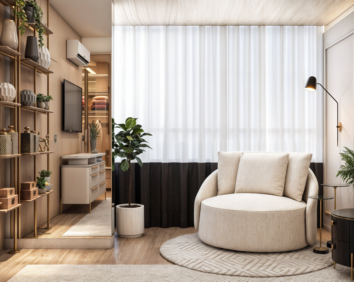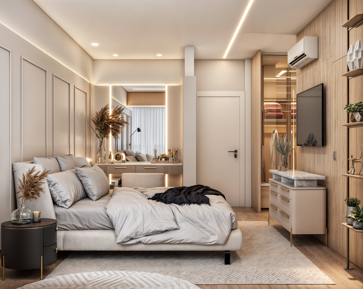 O apartamento de 200m², localizado no centro de Criciúma, SC, teve como base em sua concepção a busca por elegância e aconchego.